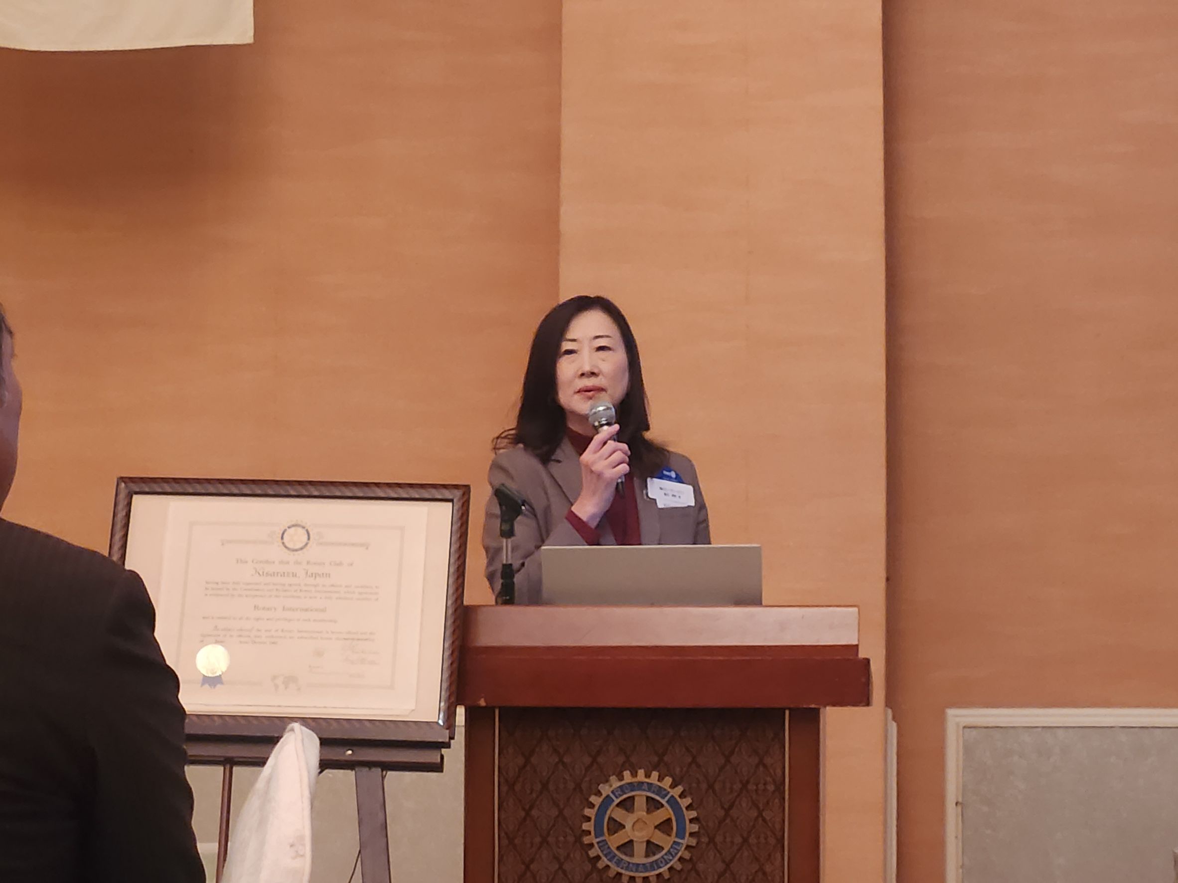 卓話は、鴨川クラブの亀田美穂様に依頼し、
