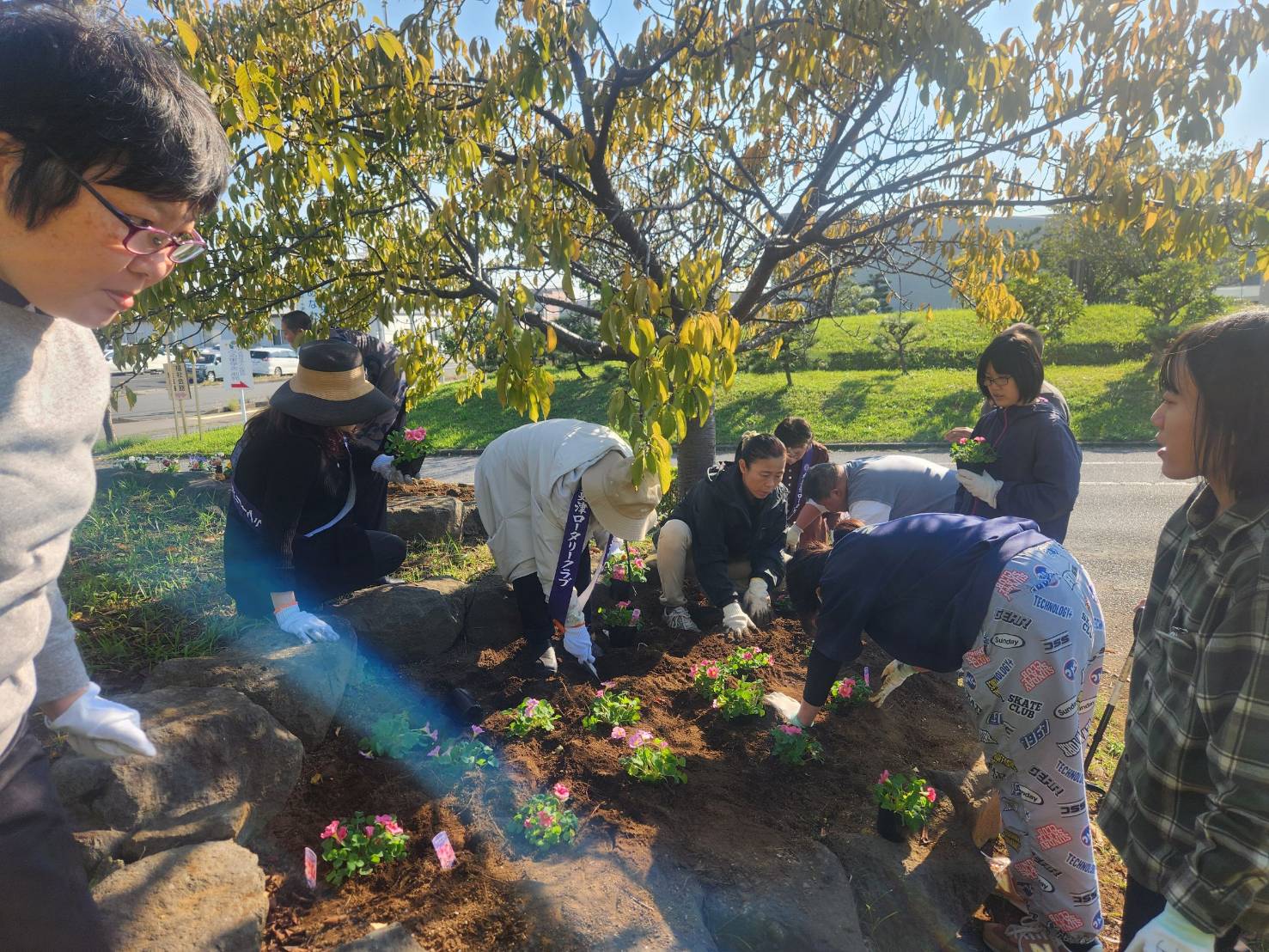 木更津市総合福祉会館の入口にある、ロータリーガーデンの花植えを行いました。